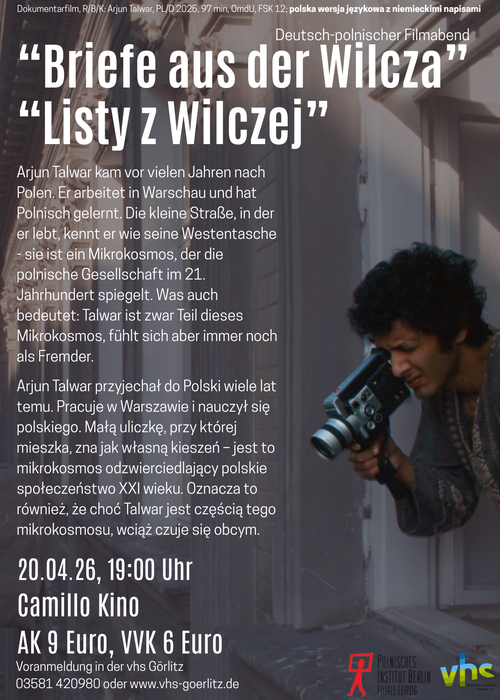 Bei Voranmeldung in der vhs Görlitz erhalten Sie im Kino den ermäßigten Eintrittspreis von 6,00 € (Barzahlung im Kino). Die Veranstaltung ist ein Kooperationsprojekt der Volkshochschule Görlitz mit der Filiale Leipzig des Polnischen Instituts Berlin.